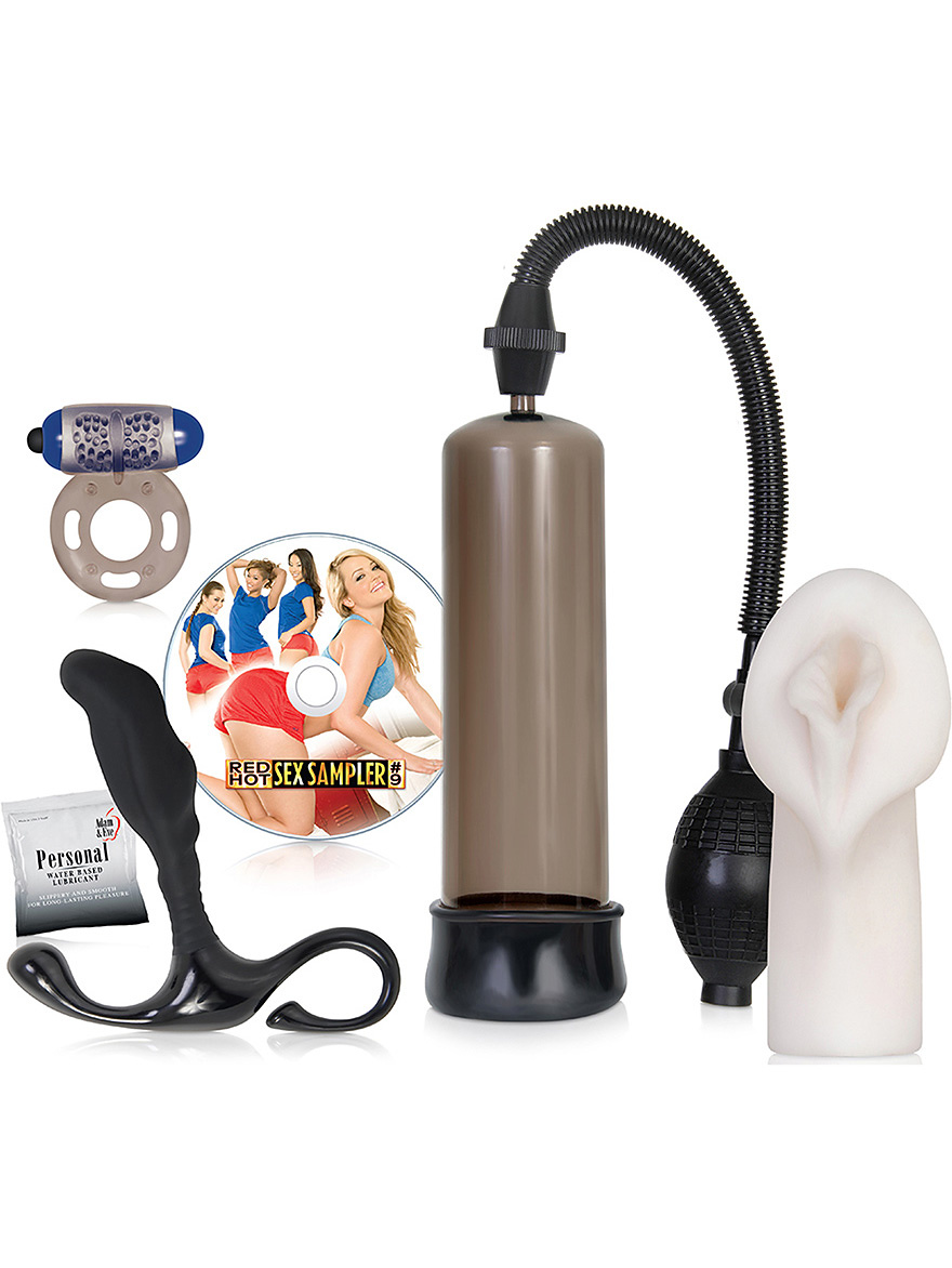 An exciting kit for men who are happy to find new ways to increase sexual stimulation. The kit contains a penis pump, vibrating cockring, artificial vagina and a massage rod intended for your prostate.