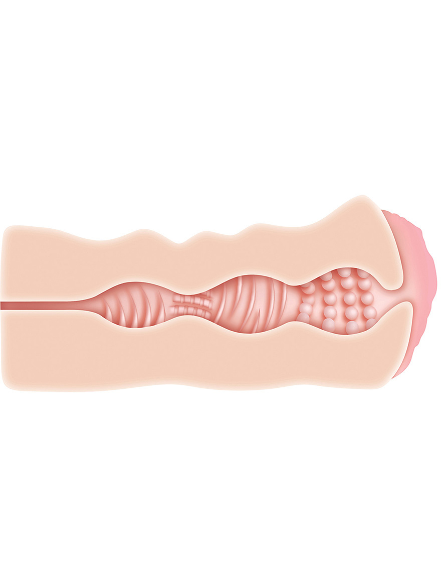 Pleasurable artificial vagina with a sexy opening and pink, inviting lips. On the inside, you are met by a tight tunnel with a stimulating texture. Once inside after passing through a tight entrance, you are first met by stimulating knobs and then met by delicious grooves at the same time as it gets tighter the further in you get.