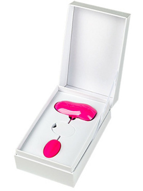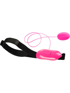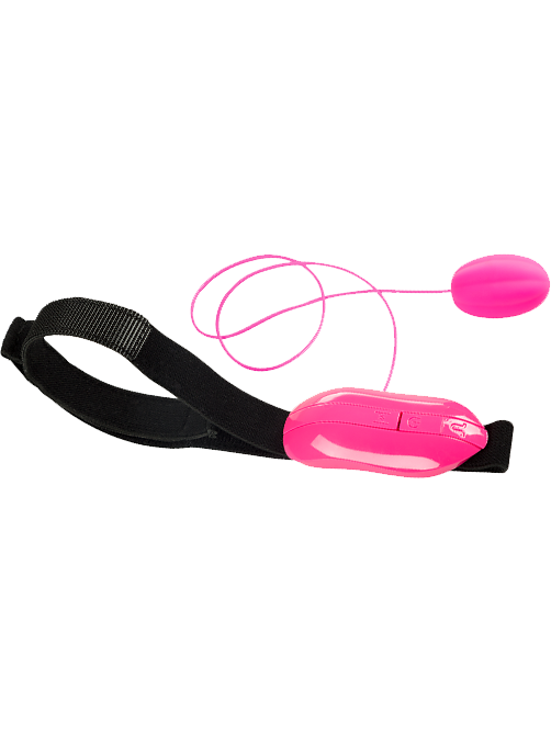 At the bottom, the egg has a silicone-cord that is so flexible and thin that you don't even notice it. The cord leads to the control remote which lets you control the egg's ten different vibration-modes. The vibrations are powerful but quiet. With an elastic strap with velcro-straps you can then fasten the remote around the thigh.