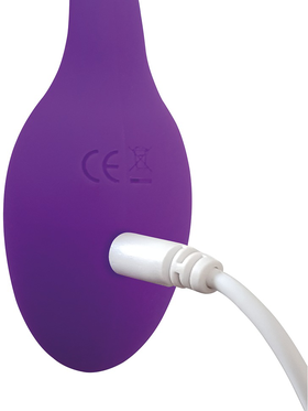 This elegant and egg-shaped clitoral vibrator stimulates you vaginally, while a narrower bend wraps around and reaches your clitoris. Perfect for pleasurable solo-play where both the clitoris and g-spot are stimulated at the same time.