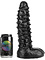 This black and large dildo is a full 26.5 cm long and has an extreme appearance. It is guaranteed to fill you or your partner up properly. The shaft is thick and decorated with large knobs that provide extra stimulation and an intense sensation. At the top there is a well-marked glans and at the bottom a large scrotum.