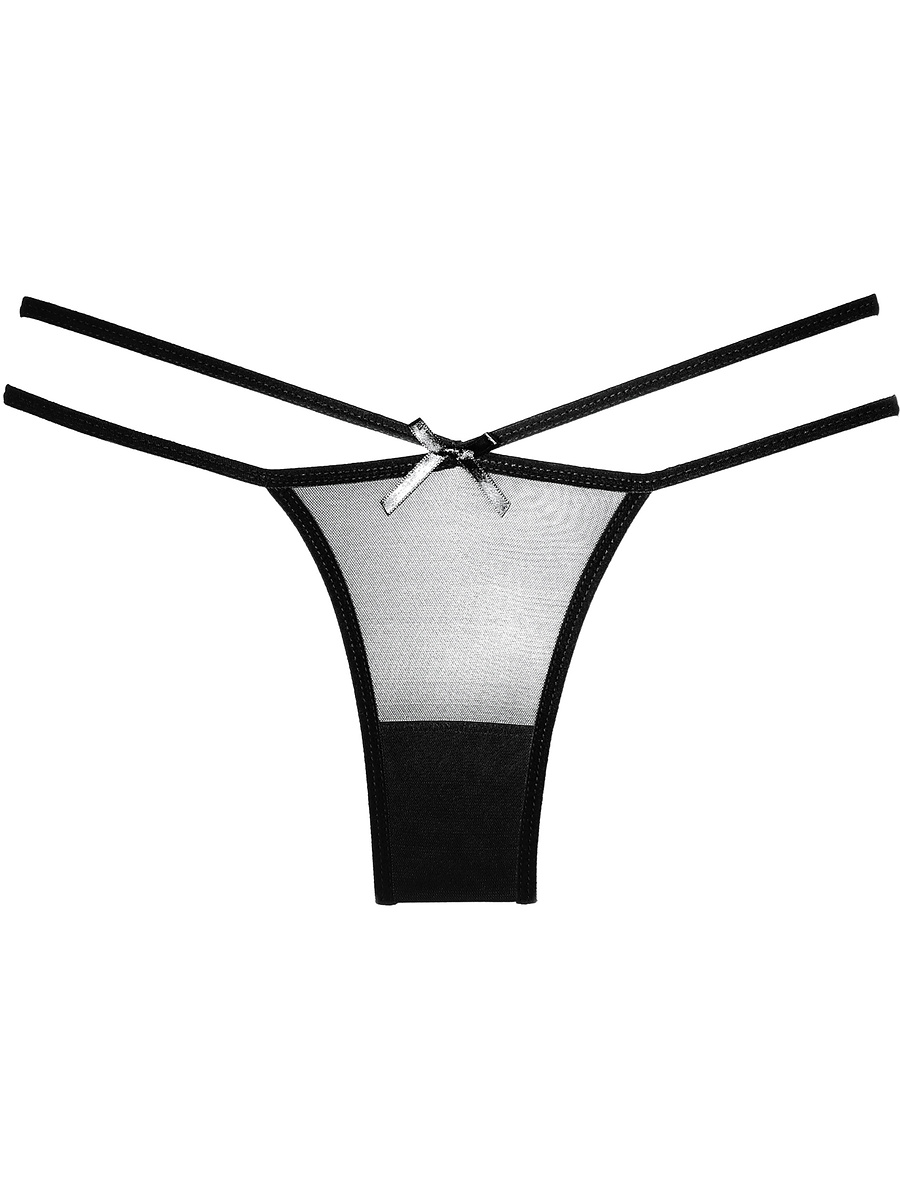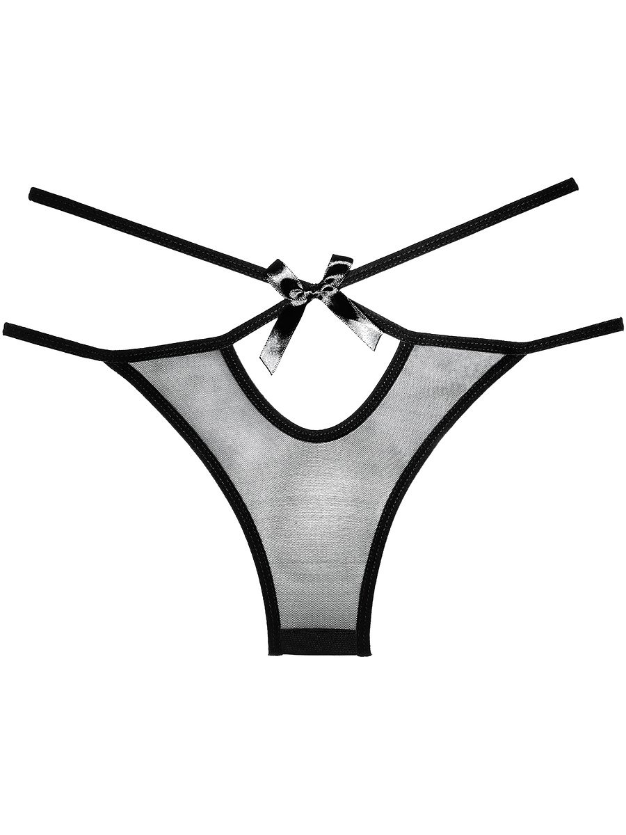 Delicious panties in thin fabric where the skin is visible through. Around the hips are two thin bands and both at the back and front there is a small bow that completes the exquisite design.