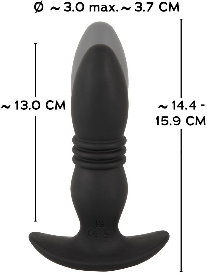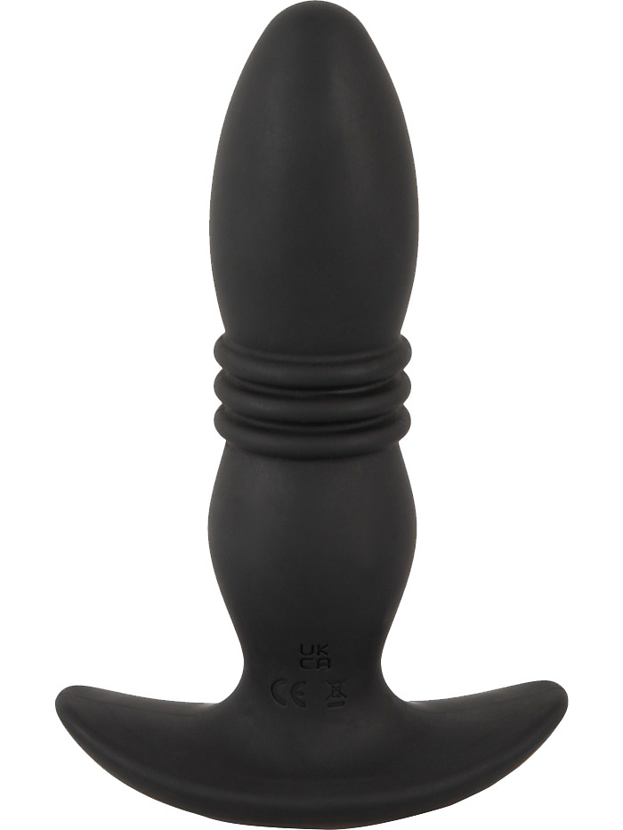 The RC Thrusting Massager from Anos is a vibrating butt plug with a powerful thrust function. Experience intense anal stimulus with a soft, tapered tip that stimulates the prostate directly with its penetrating motion. The vibrations also spread to the base, which massages the pelvic floor when the plug is worn.