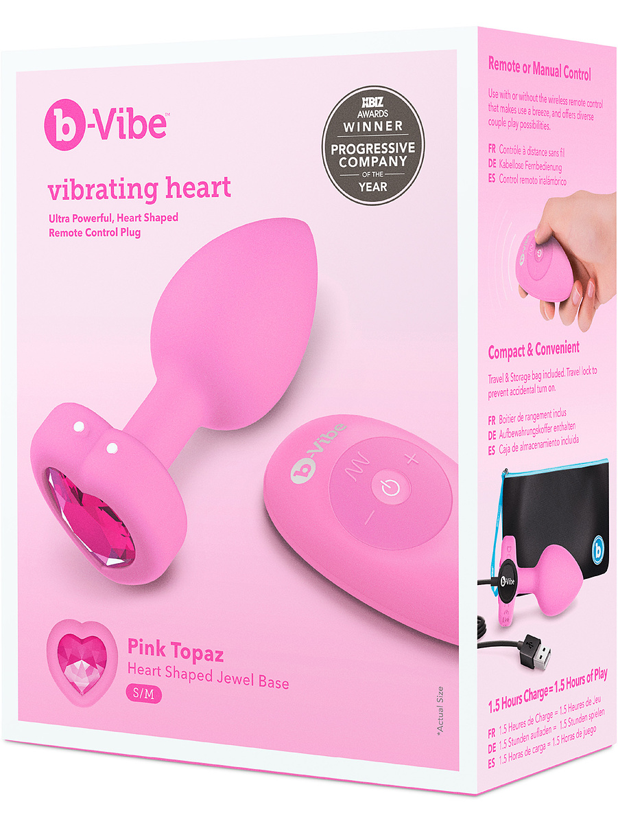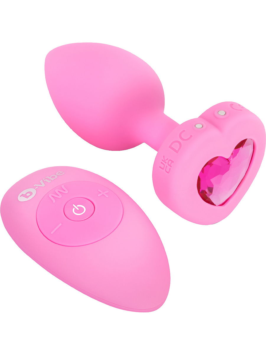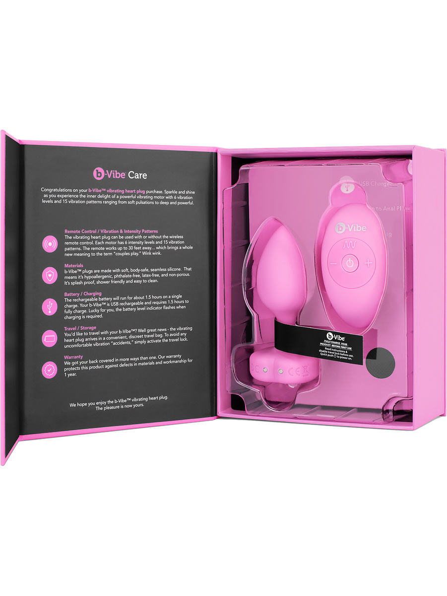 B-Vibe Vibrating Heart, Remote Control Plug, pink