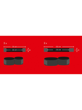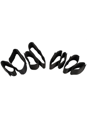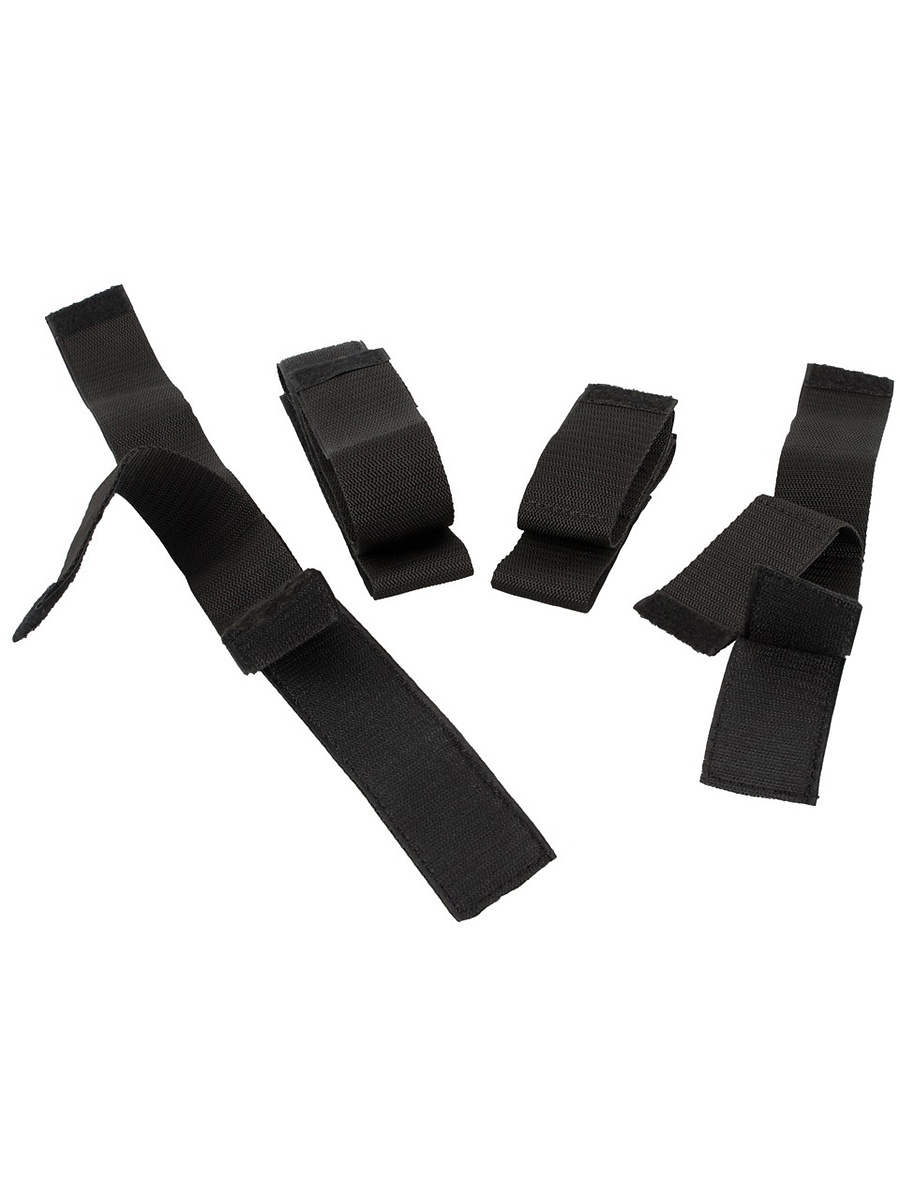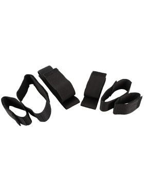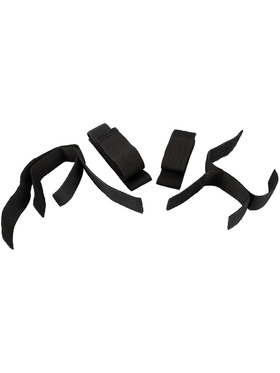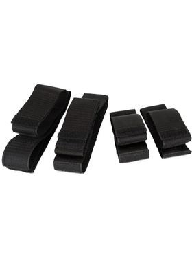 The kit includes 2 pairs of straps: one pair that fastens at the elbows and knees, and another pair that fastens around wrists and ankles. Each strap has 2 loops, one for the arm and one for the leg, keeping your partner in an exposed and restrained position. The straps are made from durable belt-material and have no padding, giving a more raw sensation.
