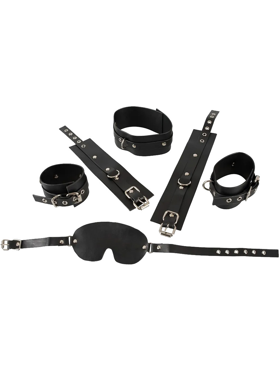 This 11-piece bondage-kit contains everything you could possibly need for exciting and captivating domination-play. The products come in a bag where they can all be conveniently stored. It is perfect for sexy fetish play and thanks to the practical bag with snap button, you can always be ready for play on the go. It also comes with two chains that act as handles for the bag.