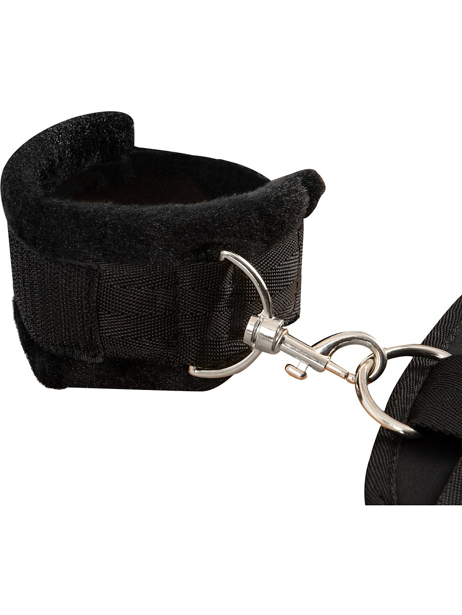 This is a combined restraint set from Bad Kitty for the neck, wrists and ankles. The parts that come into contact with the body are padded with soft plush for maximum comfort and can be adjusted with velcro for a perfect fit.