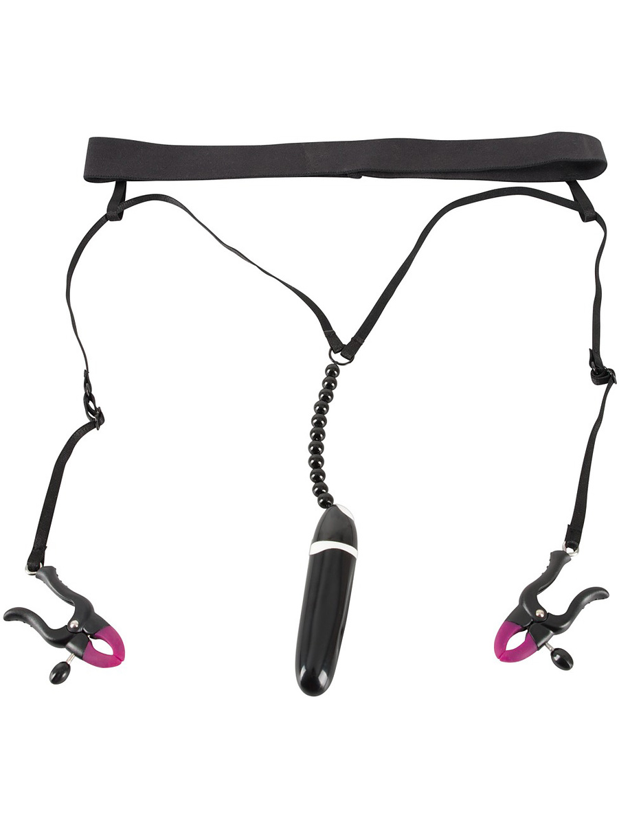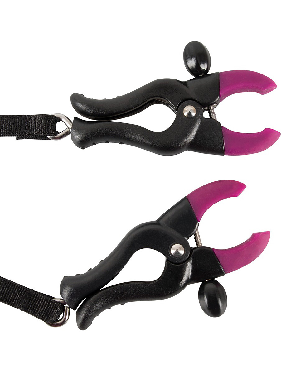 These unique thongs have clips that attach to the outer labia to part them and expose the clitoris. The pressure of the clamps can be easily adjusted so that you get the intensity you desire. At the far end, there is pink silicone that makes them sit comfortably in place.