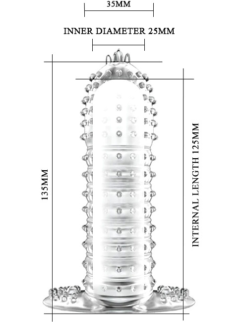 Made from soft and stretchy TPR-material, this sleeve fits snugly around the penis and fits most sizes. It is completely covered in knobs and ridges, from base to tip – to stimulate with every penetration. The transparent design provides visual contact, while the structure does the work for you.