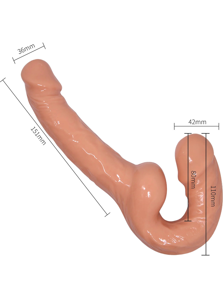Explore dual stimulation with a toy that's as versatile as it is imaginative. This double-sided strap-on dildo is designed to stimulate both of you simultaneously during exciting penetration play. With its realistic shape, flexible body and two penetrating ends, it's ready to go with whatever fantasies you feel like fulfilling.