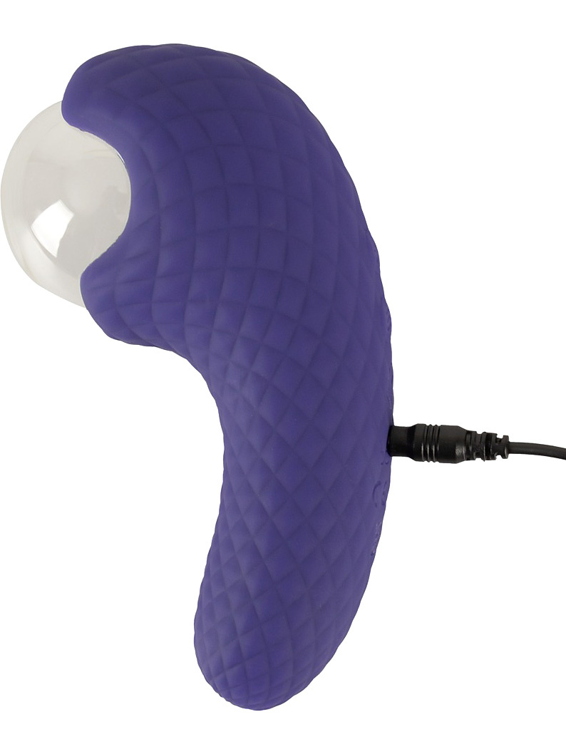 Zanto sits firmly in your hand thanks to its textured silicone surface, which is both bodysafe and velvety smooth against the skin. The flexible shape makes it easy to maneuver, whether you're using it for internal or external stimulation. The glass globe is not only beautiful - it glides silky smooth over the skin and enhances every movement with its fascinating glow.