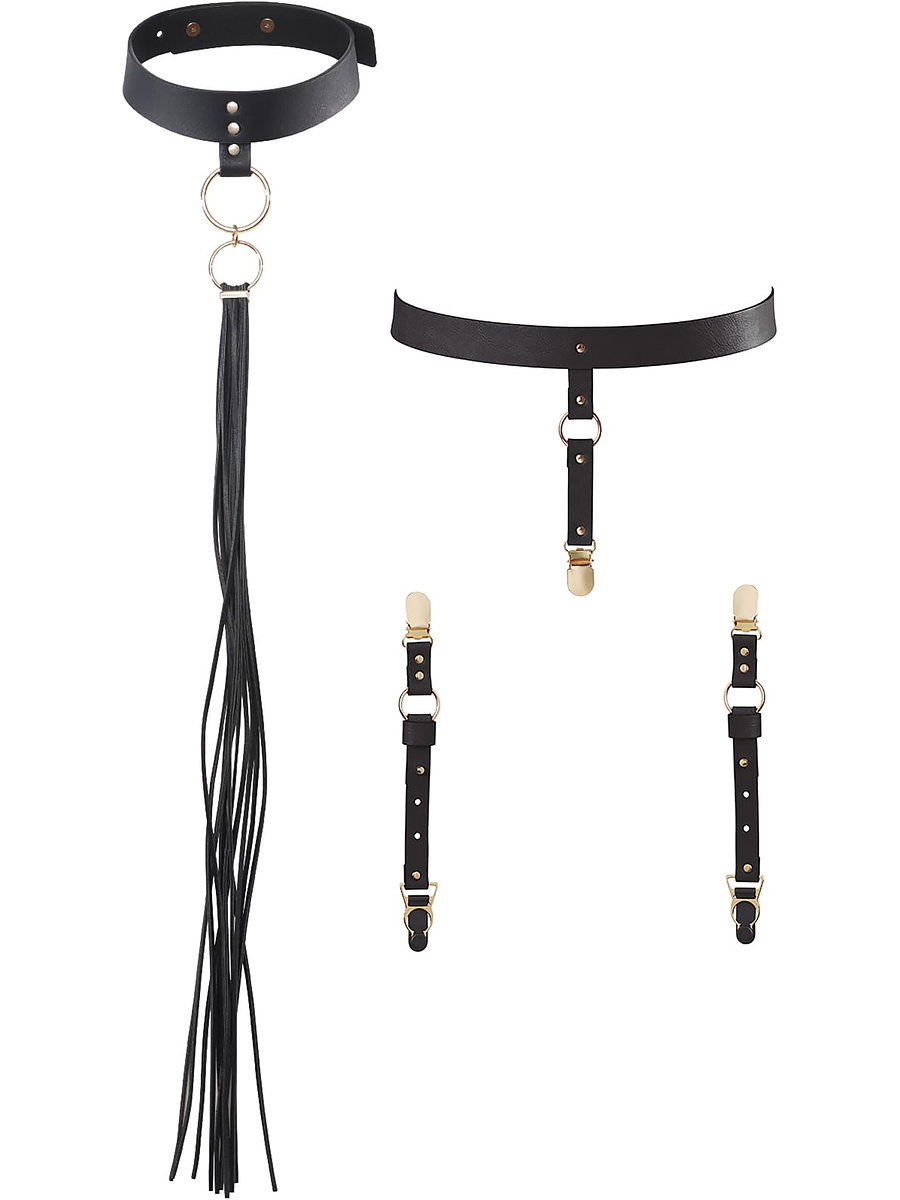 - Soft bondage: Blindfold, handcuffs, tickling feather, whip.