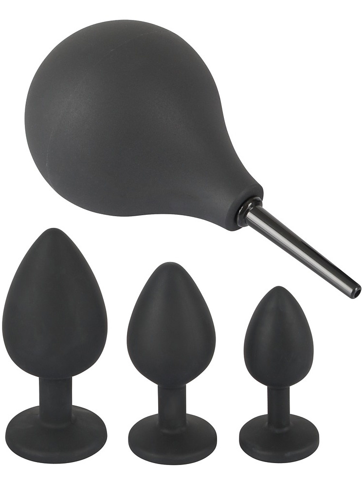 Black Velvets Anal Kit, Douche + 3 Jewel Butt Plugs