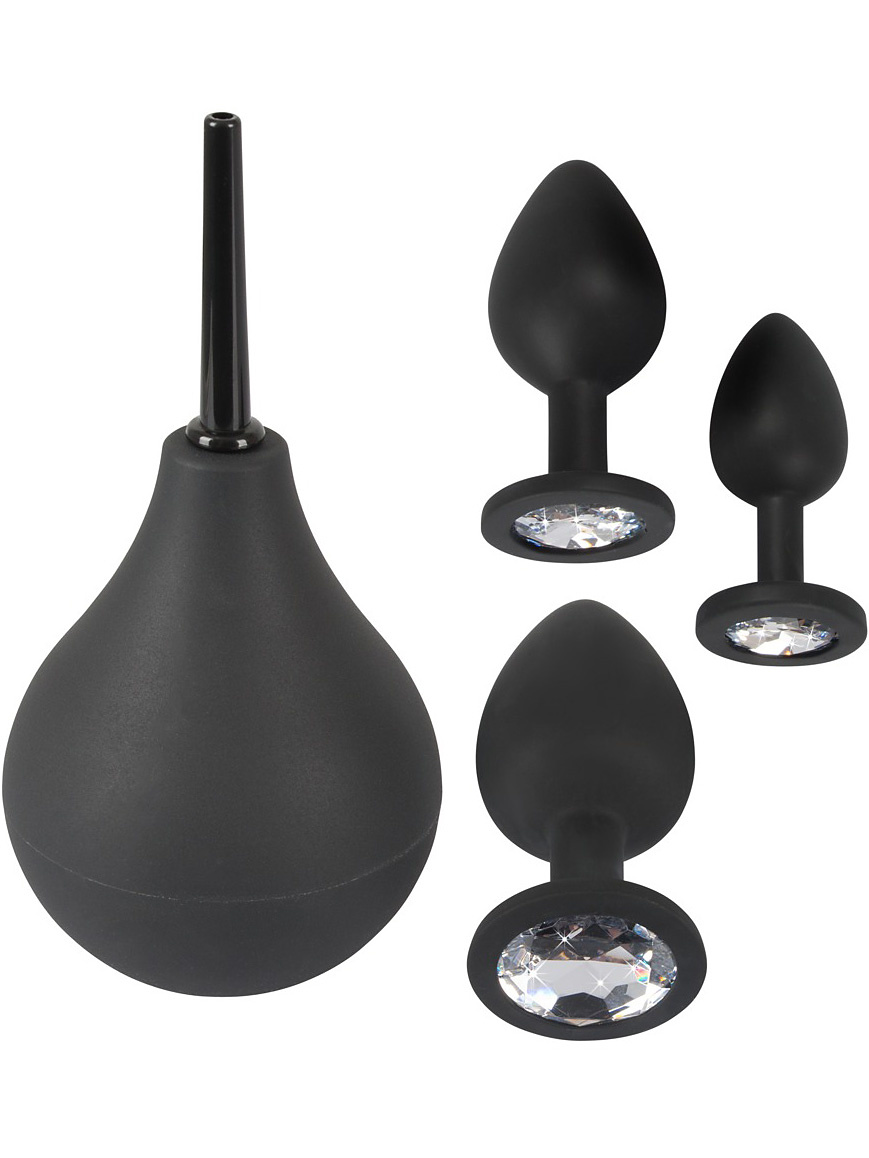 Anal Kit, Douche + 3 Jewel Butt Plugs - Effective cleaning and great pleasure!