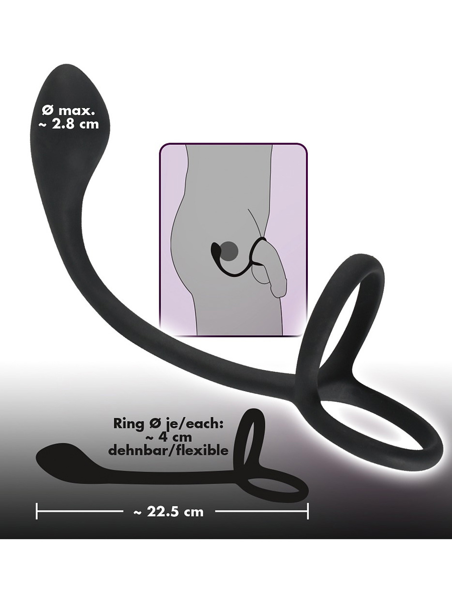 Looking for a product that combines erection support with deep anal stimulation? This clever toy combines a penis- and scrotum-ring with a well-shaped anal plug to maximize both pleasure and endurance during your most intense moments.
