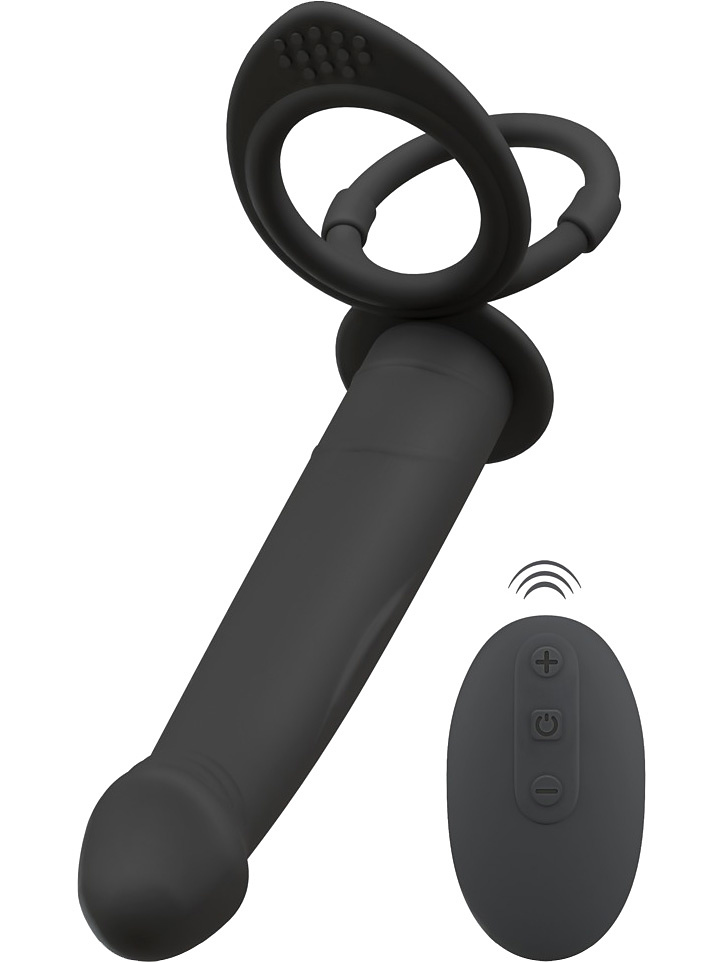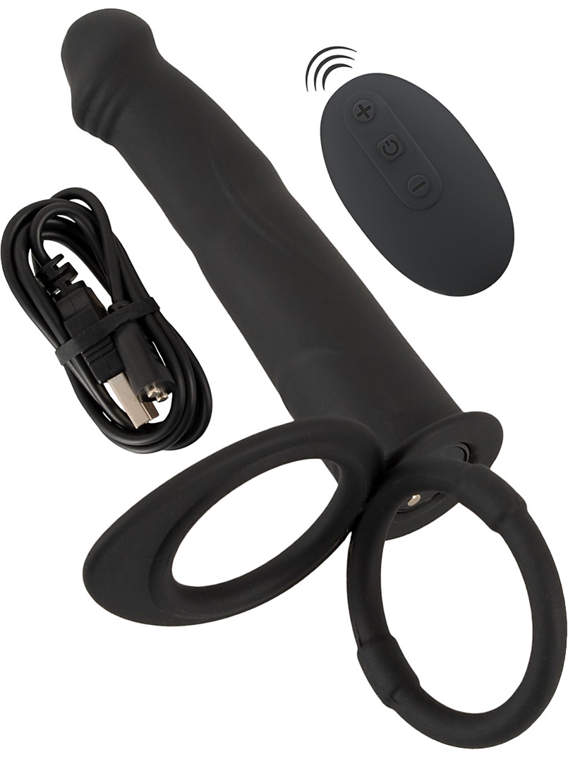 The RC Double Fucker from Black Velvets is an exciting toy, equipped with a vibrating dildo for stimulating double penetration. The slim and flexible anal vibrator is firmly attached to the combining penis and scrotum ring.
