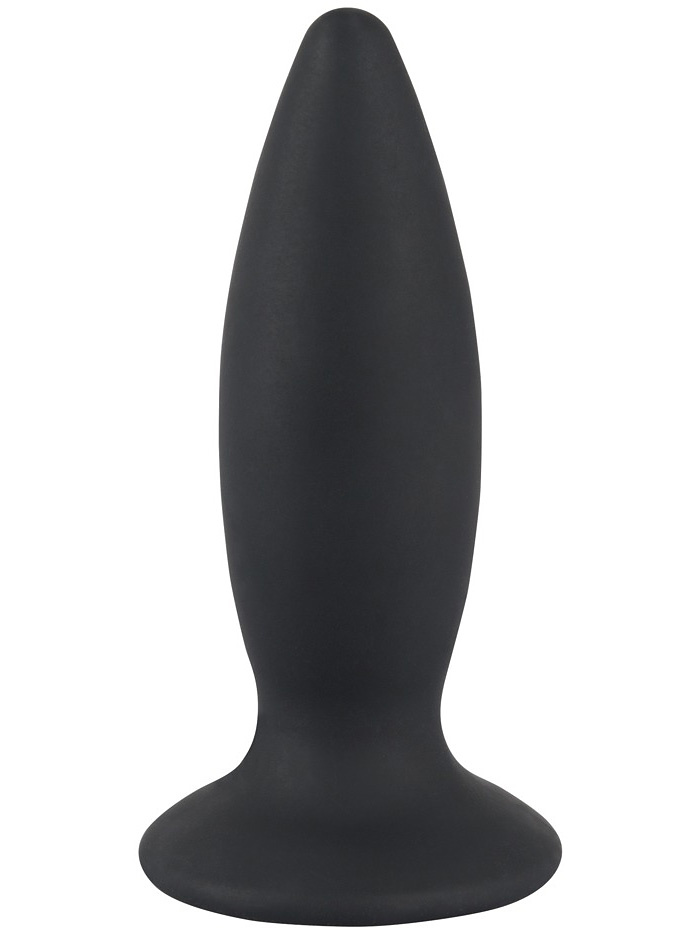 This is a rechargeable butt plug with a cone-shaped design that provides comfortable insertion while the wide base both prevents it from slipping in too far and acts as a handle.