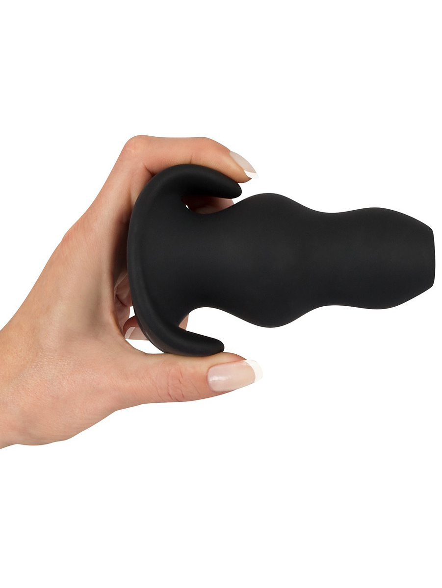 The butt plug has a design like two balls, the largest at the bottom, where this wavy shape fills you up nicely. At the bottom there is a wide base that gives you a perfect grip and prevents the plug from slipping too far in.