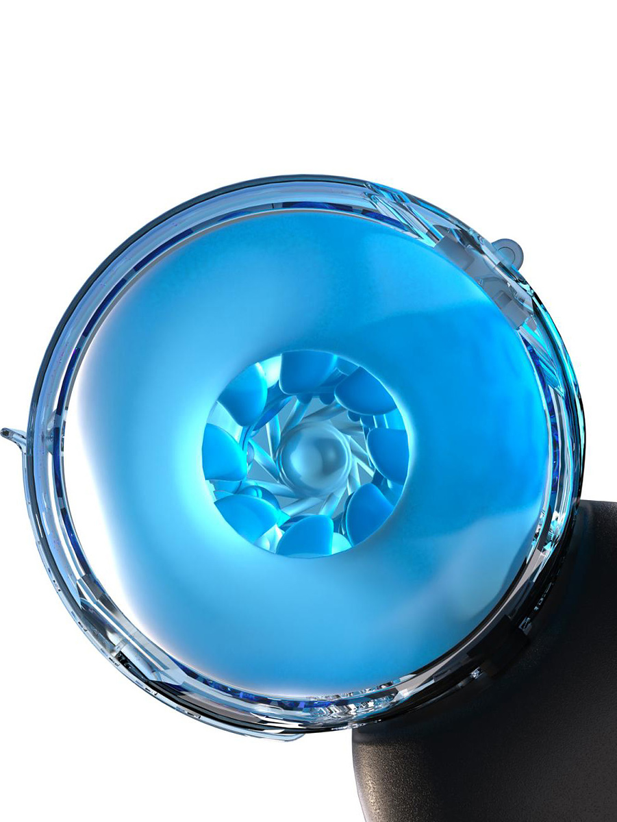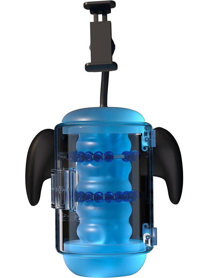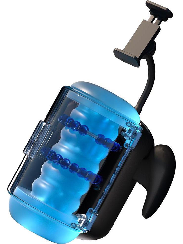 The blue sleeve on the inside of the transparent shell is made of soft and flexible TPE-material with textures for a fantastic penis-massage along with the pearlbands that move up and down.