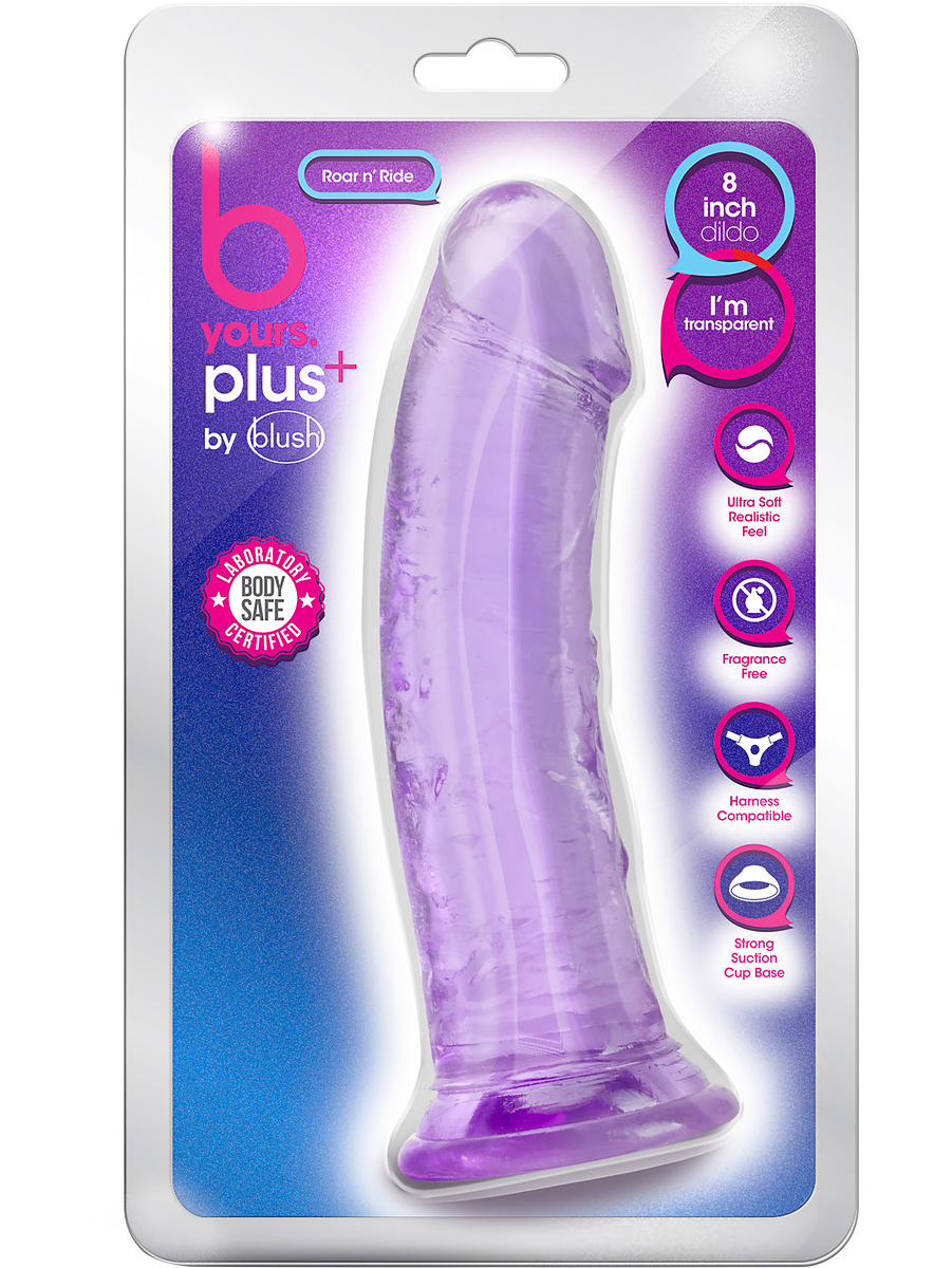 Fulfill your fantasies with the realistic Roar n' Ride dildo. The dildo belongs to the B Yours Plus-series, a softer version of Blush's best-selling B Yours-series. The lovely colors with a transparent look add a touch of elegance which enhances the visual appeal.