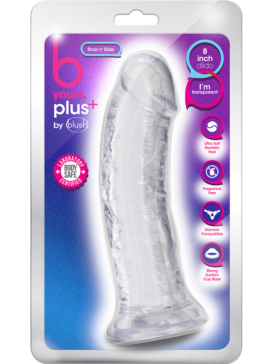 Fulfill your fantasies with the realistic Roar n' Ride dildo. The dildo belongs to the B Yours Plus-series, a softer version of Blush's best-selling B Yours-series. The lovely colors with a transparent look add a touch of elegance which enhances the visual appeal.