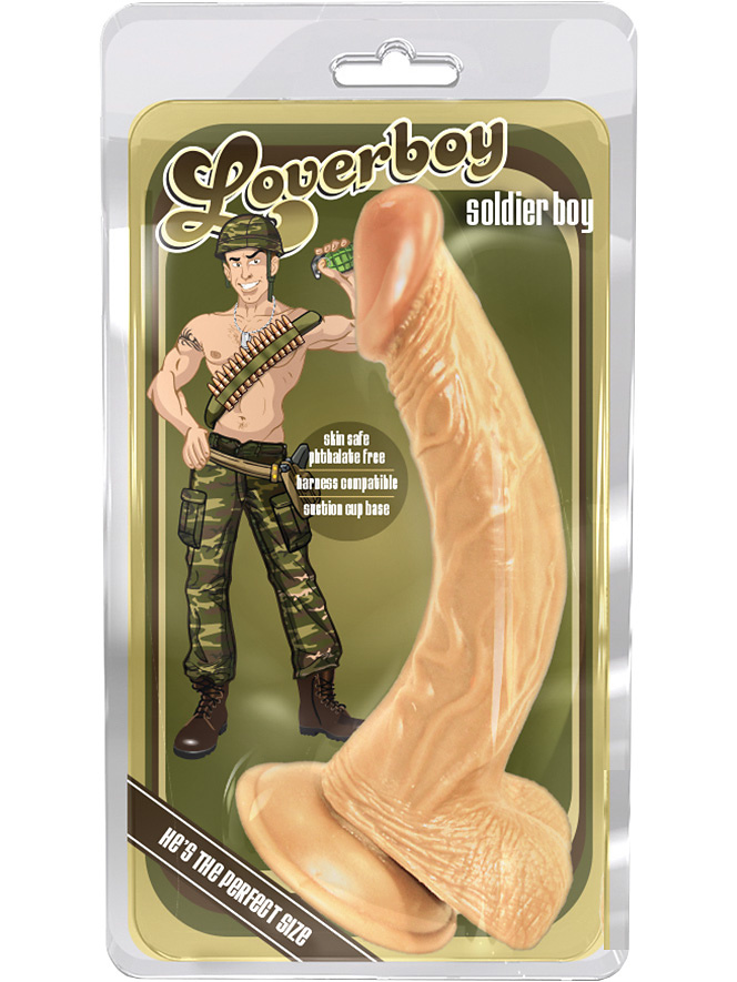 Soldier Boy has a powerful size for nice stimulation. He is well-trained, has performed all fitness tests, and knows how to handle a weapon. Soldier Boy is on high alert waiting for your orders. Whether it is gentle stimulation or deep penetration, he is always ready with his long, curved shaft and marked glans. The curved shaft aims right at your g-spot while the pulsating veins massage your inside.