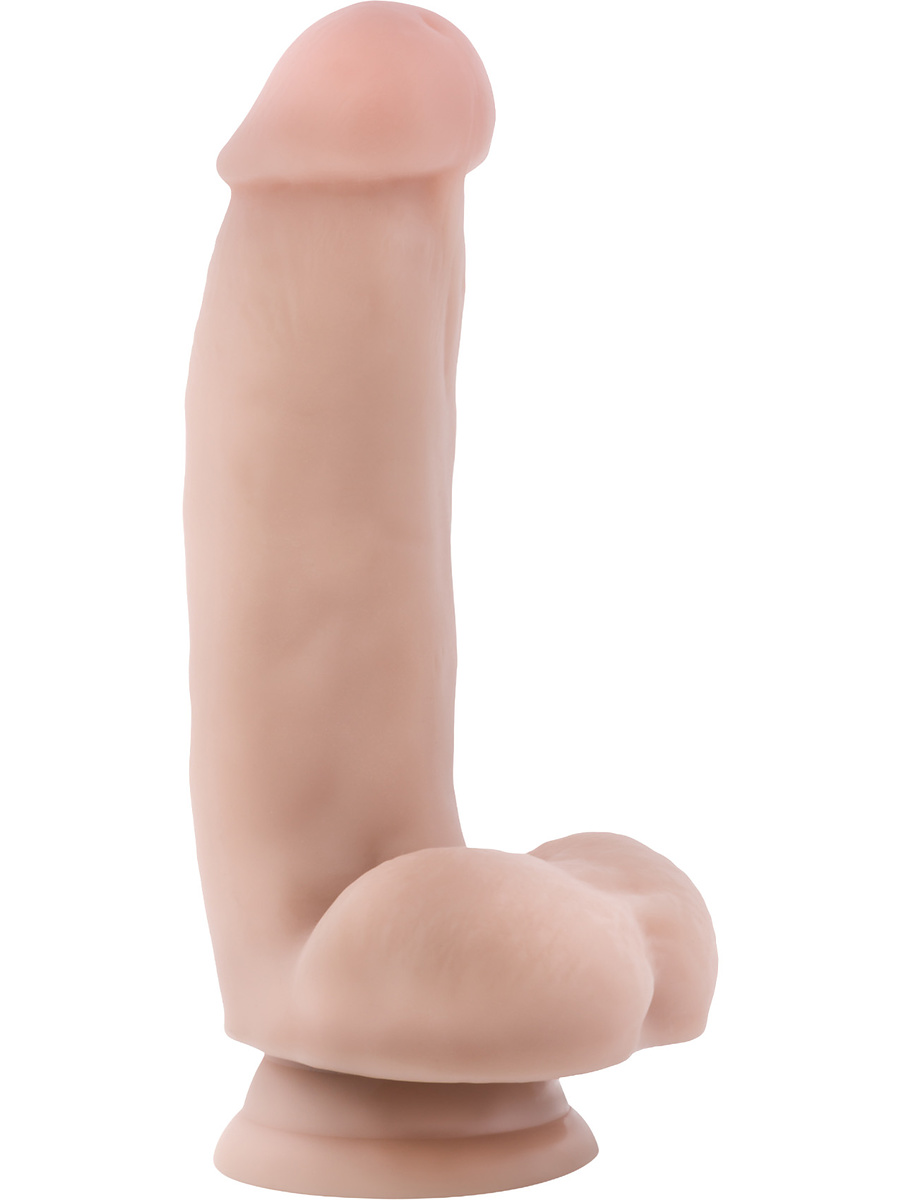 This dildo is made of bodysafe and phthalate-free PVC that gives a realistic feeling and feels good against the skin, preferably in combination with water-based lubricant. Its design also makes it compatible with some strap-on harnesses for games with your partner.
