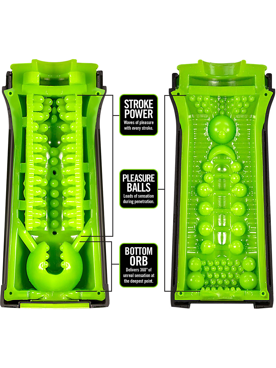The soft, realistic material offers multiple chambers with different textures for intense stimulation as you slide your shaft in and out. Enjoy stimulating grooves, knobs and a huggable ball that targets the top of your penis. Don't forget to use water-based lubricant!