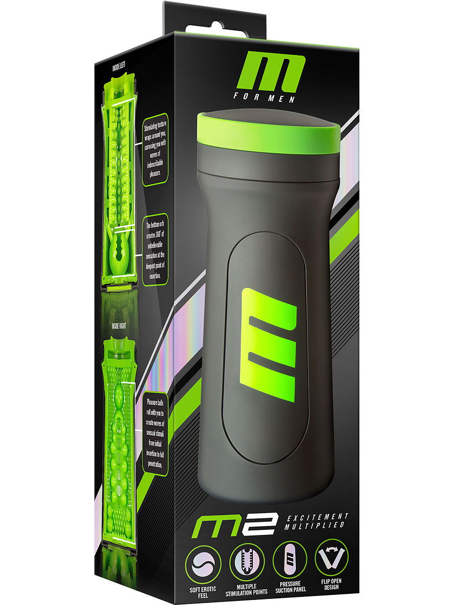 The M2 has a black and matte finish for an excellent grip. The green sleeve in the realistic and soft TPE-material X5 Plus has a neutral opening and is removable for easy cleaning. Just open the shell, remove the sleeve and clean it with water and toy cleaner. Allow it to air dry before placing it back into the shell.