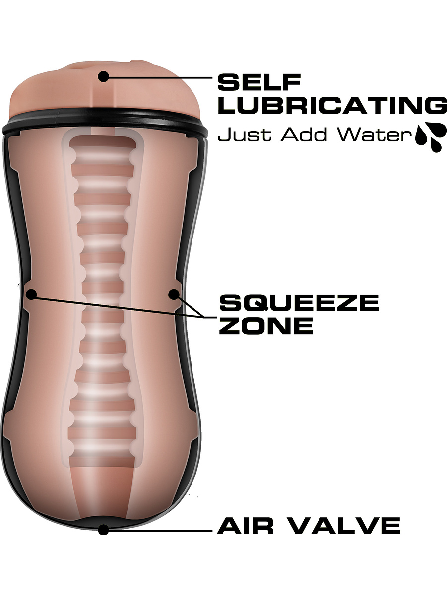 This is a soft and flexible realistic vagina in TPE, loaded with pleasure and joy. You don't need to use lubricant with this masturbator, just add water and feel how a nice lubricant appears and makes your penetration more pleasant than ever.