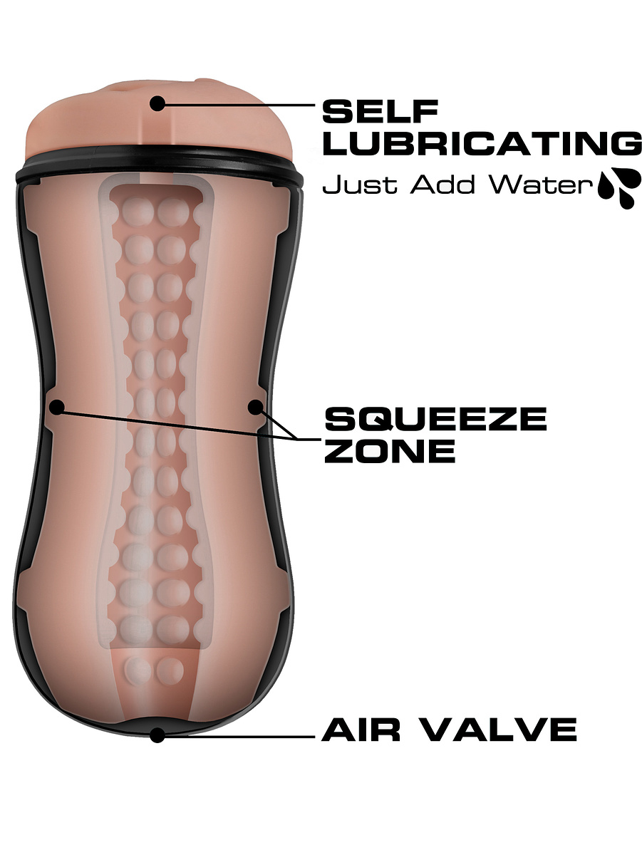 This is a soft and flexible realistic vagina in TPE, loaded with pleasure and joy. You don't need to use lubricant with this masturbator, just add water and feel how a nice lubricant appears and makes your penetration more pleasant than ever.
