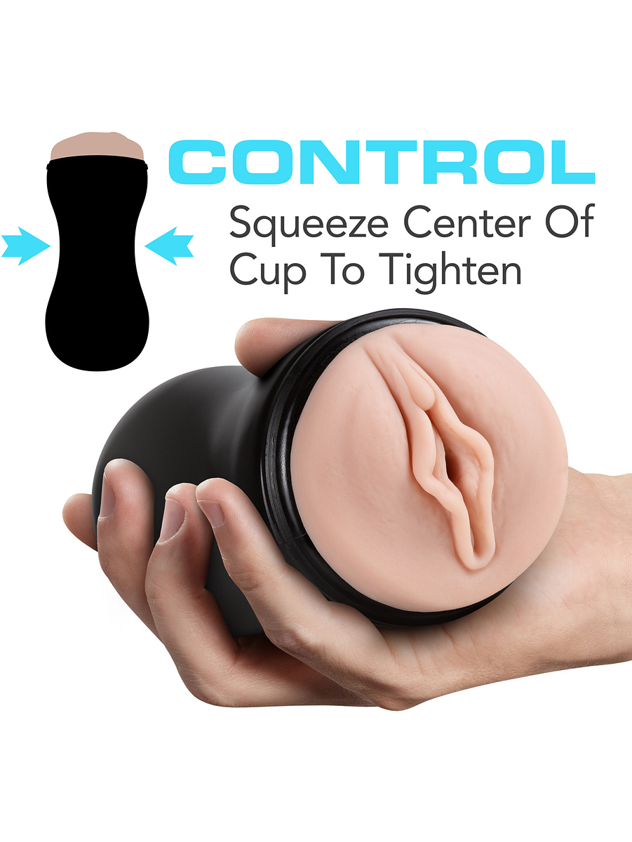 The vaginal opening gives a realistic feeling while the grooves on the inside stimulate your penis pleasantly when you penetrate it. To experience a tighter and more intense stimulation, you can also squeeze the black and soft shell. In addition, there is a small air hole at the bottom that allows you to regulate the sucking sensation yourself by placing your finger over it.