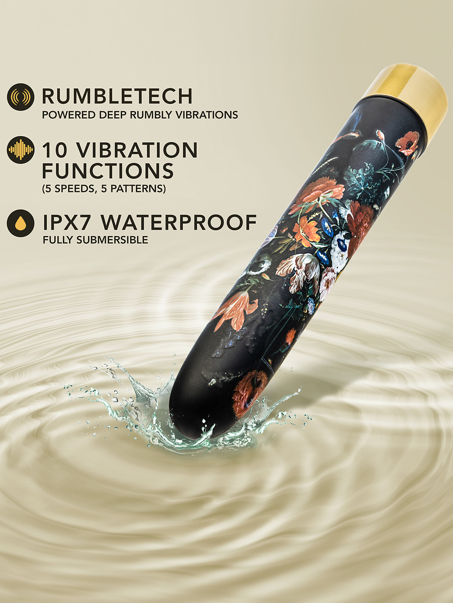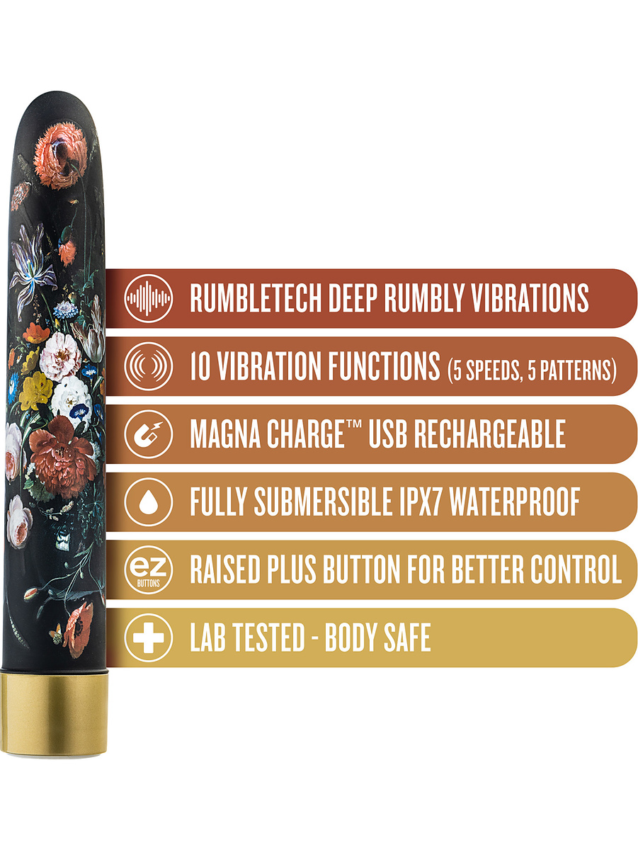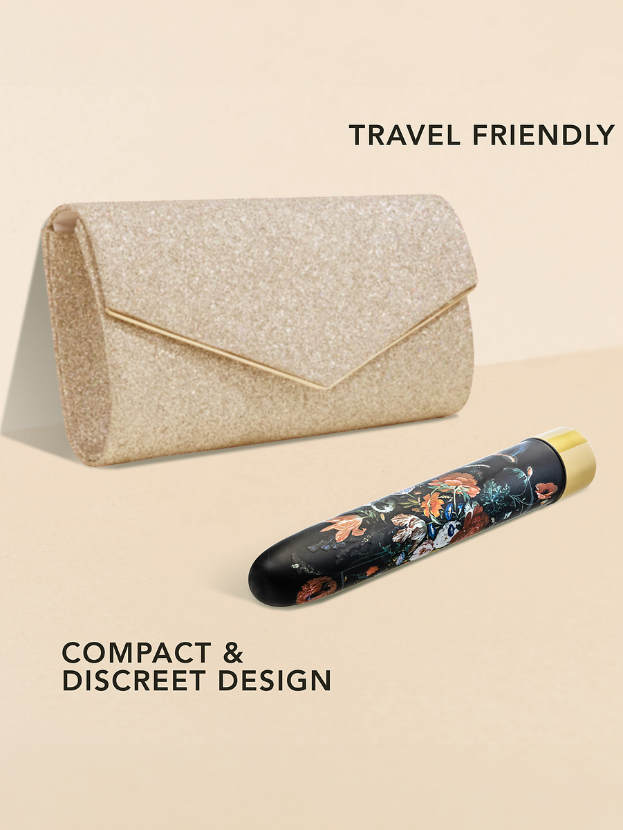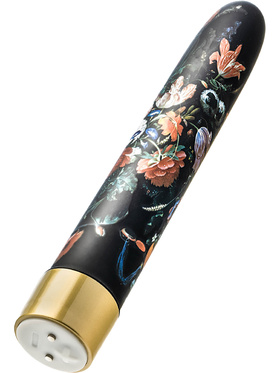 Bountiful is an exclusive and classic limited edition-vibrator, ready to give you luxury and pleasure. Its slim design in black ABS-plastic has a floral pattern that gives it an elegant look. Perfect both for vaginal stimulation and clitoral stimulation.