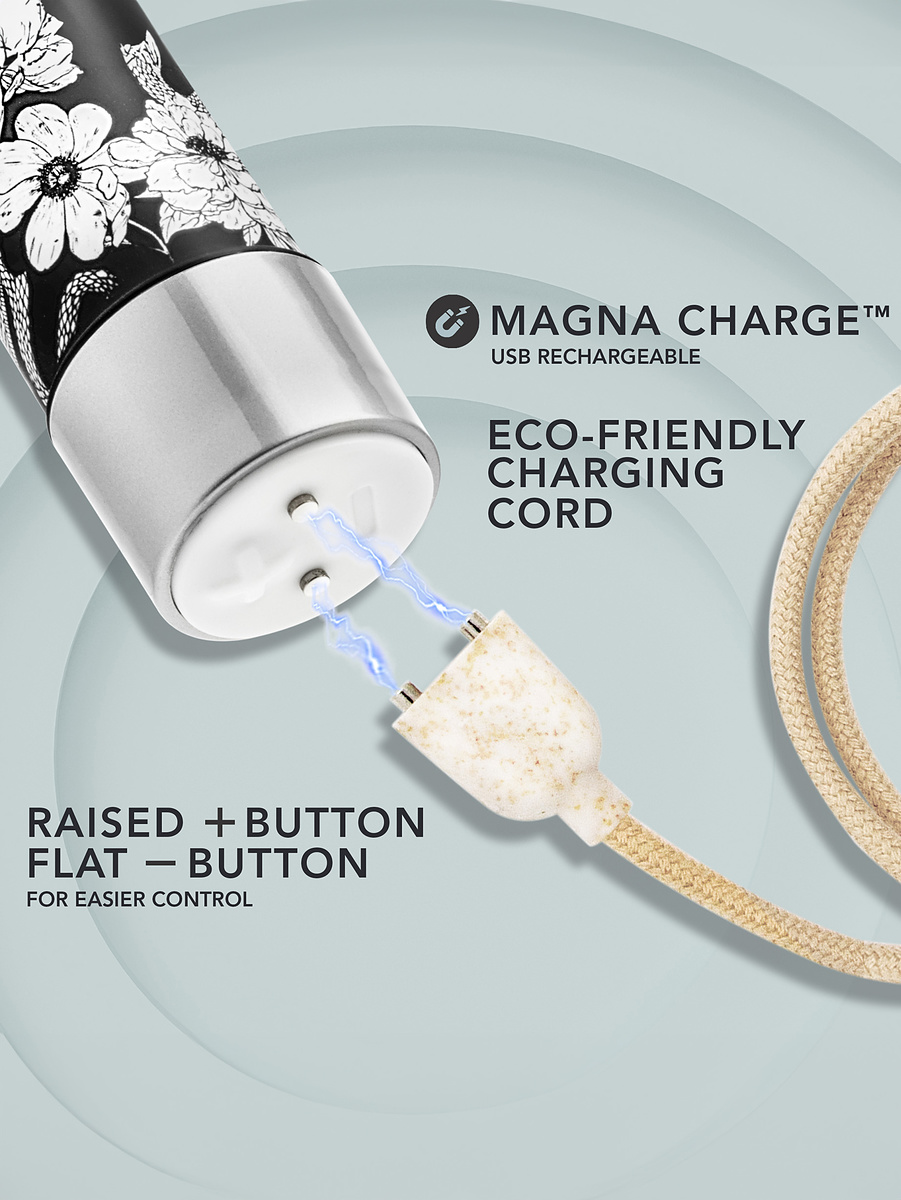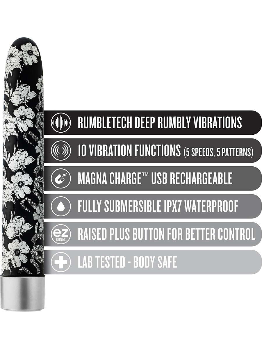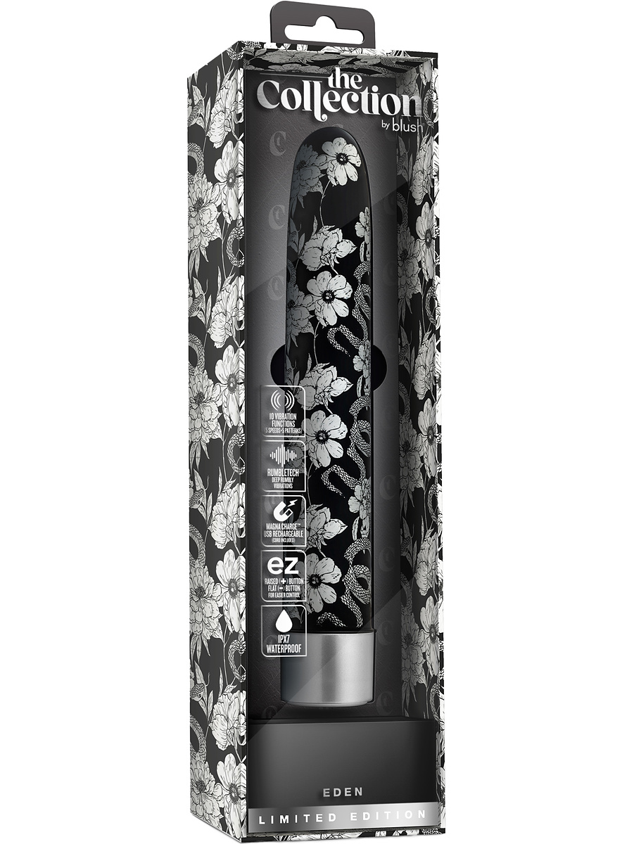 Eden is an exclusive and classic limited edition vibrator, ready to give you luxury and pleasure. Its slim design in black ABS-plastic has a delicious floral pattern that gives it an elegant look. Perfect both for vaginal stimulation and clitoral stimulation.