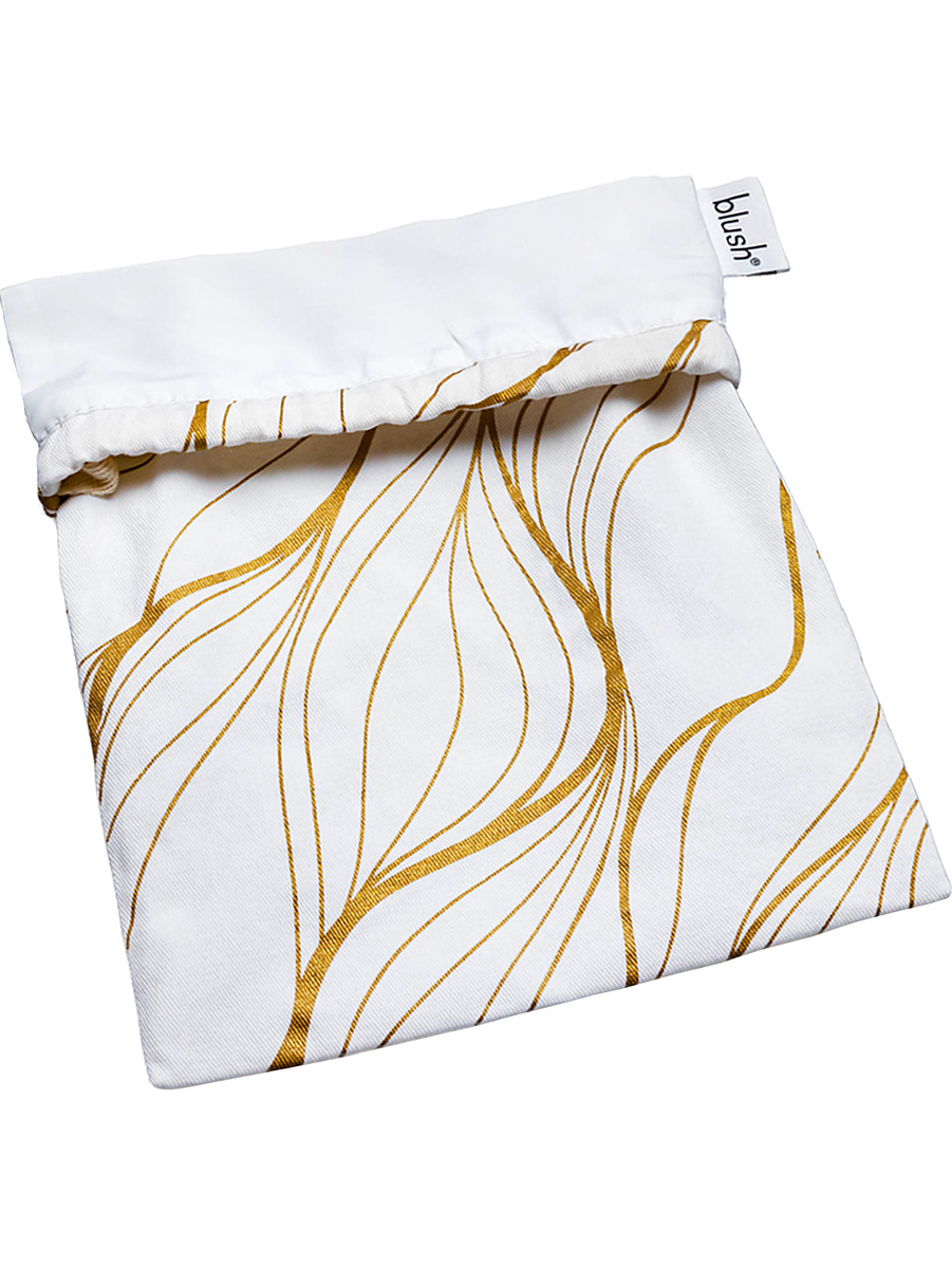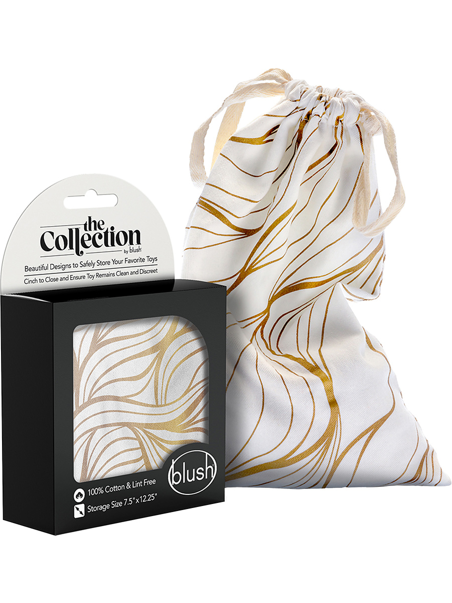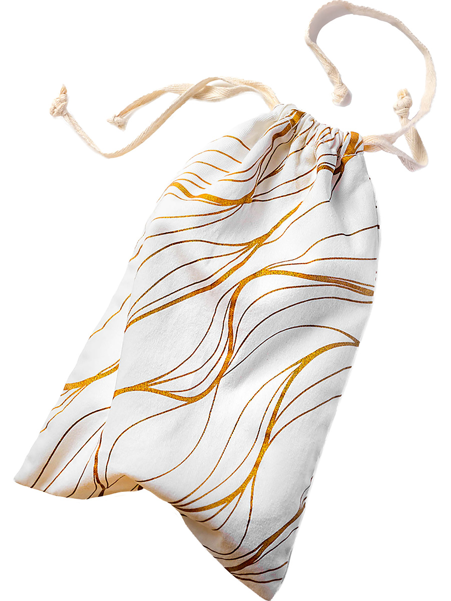 Embrace is a stylish storage bag in a perfect size for your sextoys. The soft bag in 100% natural cotton is lint-free, machine-washable and can be tumble dried. The white design has gorgeous gold-patterns and you easily secure the closure with the string to keep your toys private before and after play.