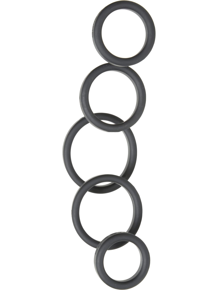 This kit with cockrings is a must for all men. Each cockring are designed with superior material which increases both comfort and longevity. With five different sizes, you can be sure to find your favorite.