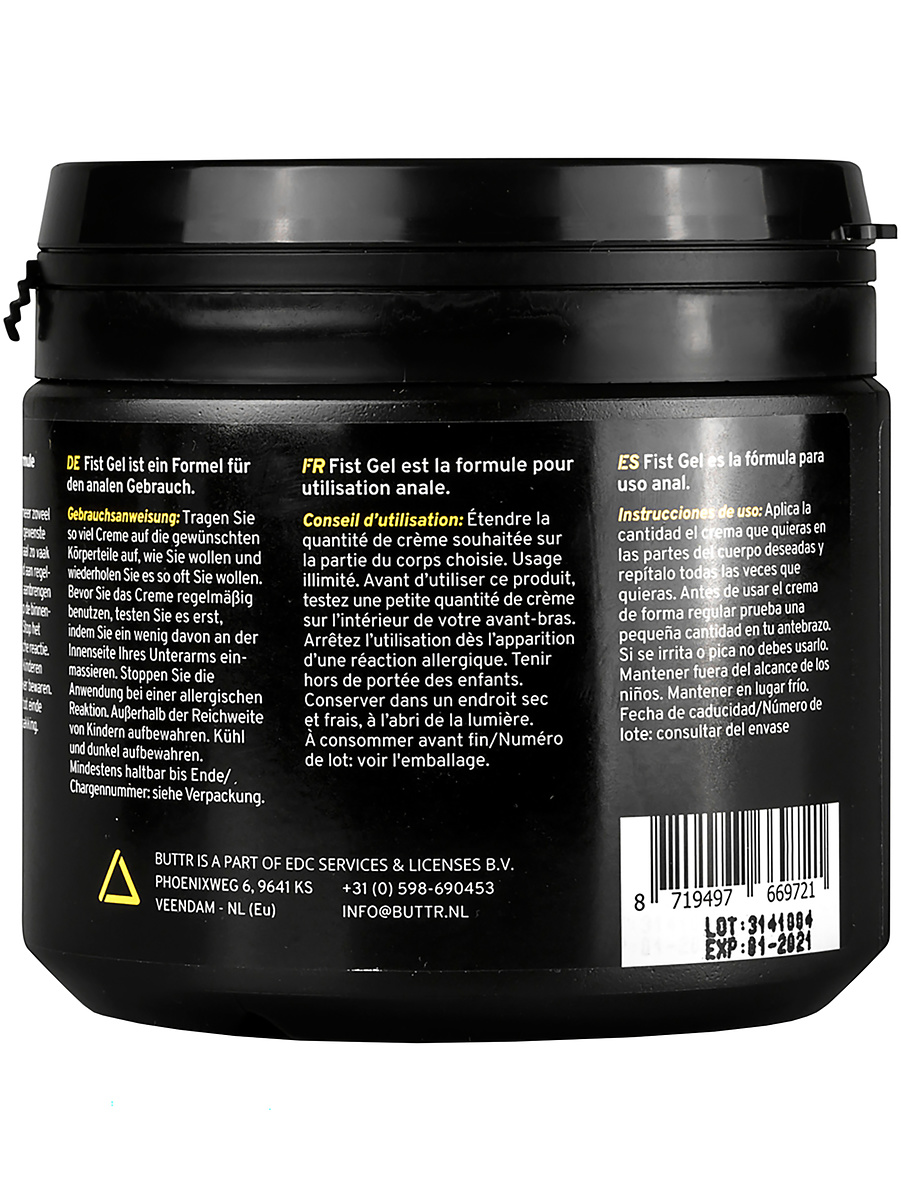 Fist Gel gives a longlasting glide-sensation, is gentle on the skin and is completely free of perfume. The large jar facilitates the application of extra lubricant so you can have full focus on your enjoyment. Apply Fist Gel to the desired area and continue to apply as desired.