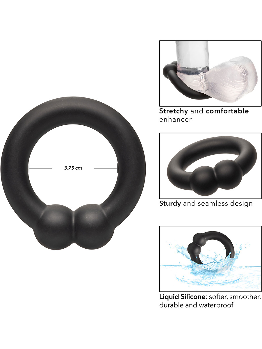 The cockring is made of super-stretchy silicone and has a unique detail with two pearls that provides maximum comfort and pleasure. It is designed to increase stamina, improve sensitivity and provide superior erection support. The silicone is soft, silky, durable and waterproof.