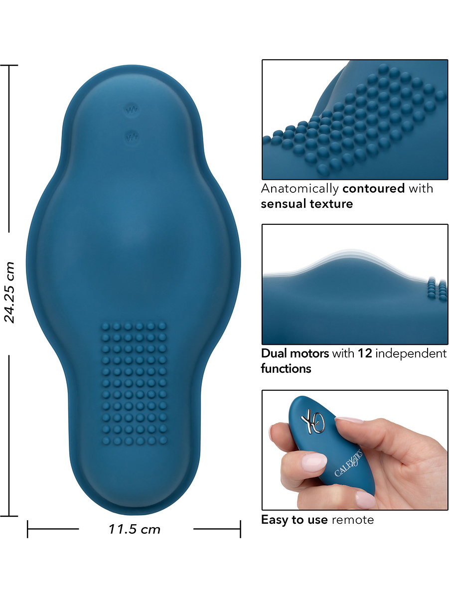 Choose between 12 different modes of vibration, pulsation and escalation per motor that you control separately for a tailored experience. Via the wireless remote (range up to 10 meters) you or your partner can easily control the functions.