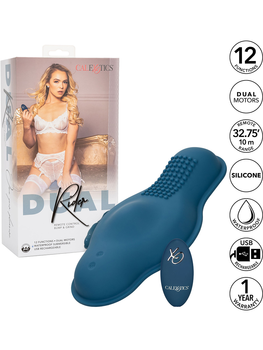 Dual Rider Bump & Ride is a remote controlled sextoy with dual motors that will stimulate you to amazing pleasure. The anatomically shaped plate is equipped with a bulge and knobs that, together with the vibrations, stimulate you when you straddle and ride it. Perfect for stimulating the clitoris and labia.