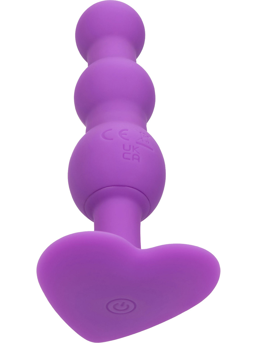 The shaft in silky-smooth silicone consists of three balls that start small and get bigger the further down you go. This provides a pleasant introduction together with water-based lubricant. The narrow neck keeps it comfortably in place while the heart-shaped base prevents it from slipping in too far.