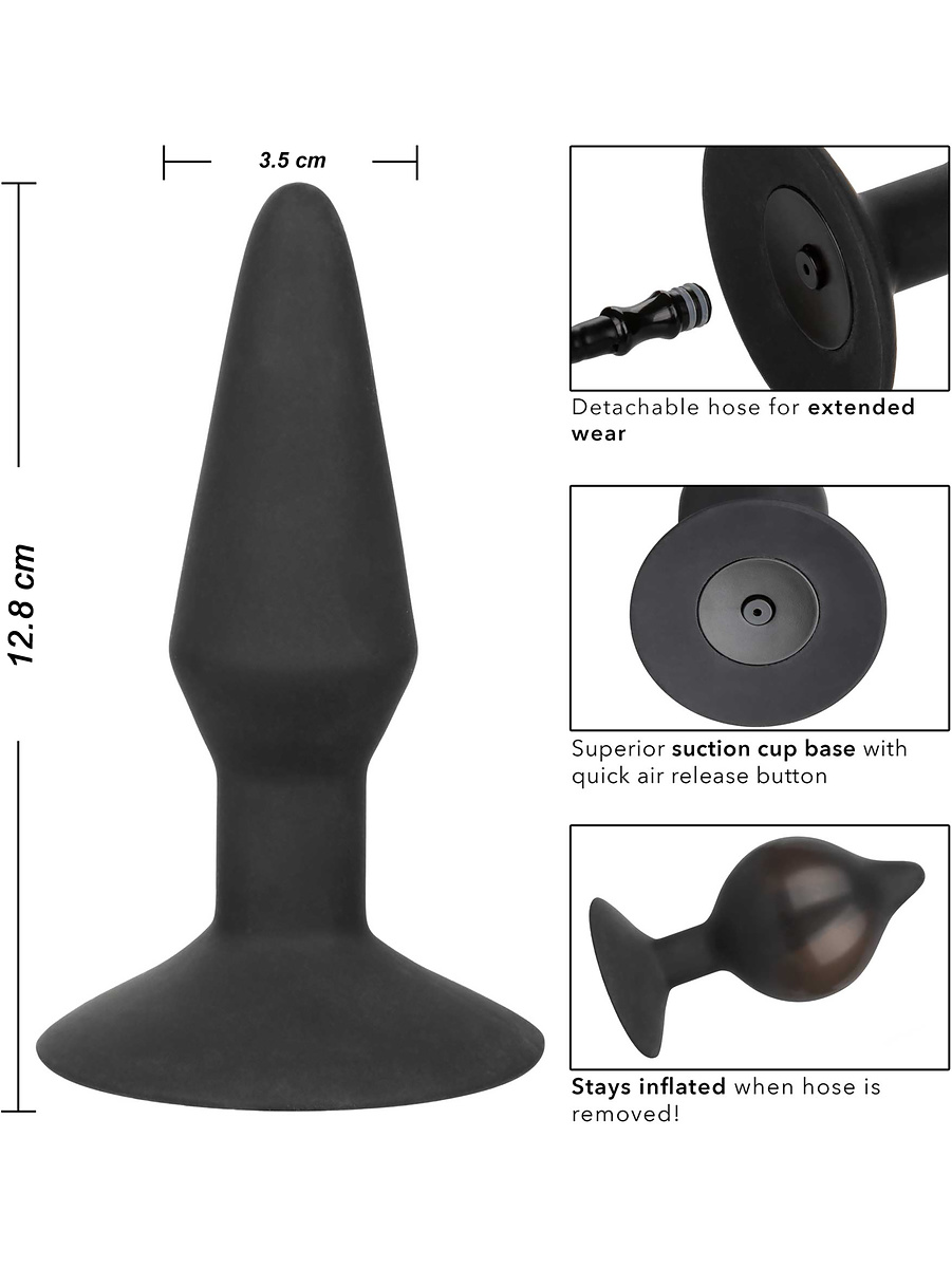 This is an inflatable butt plug with a simple hand-pump and removable tube. The butt plug remains inflated even when the tube is removed.