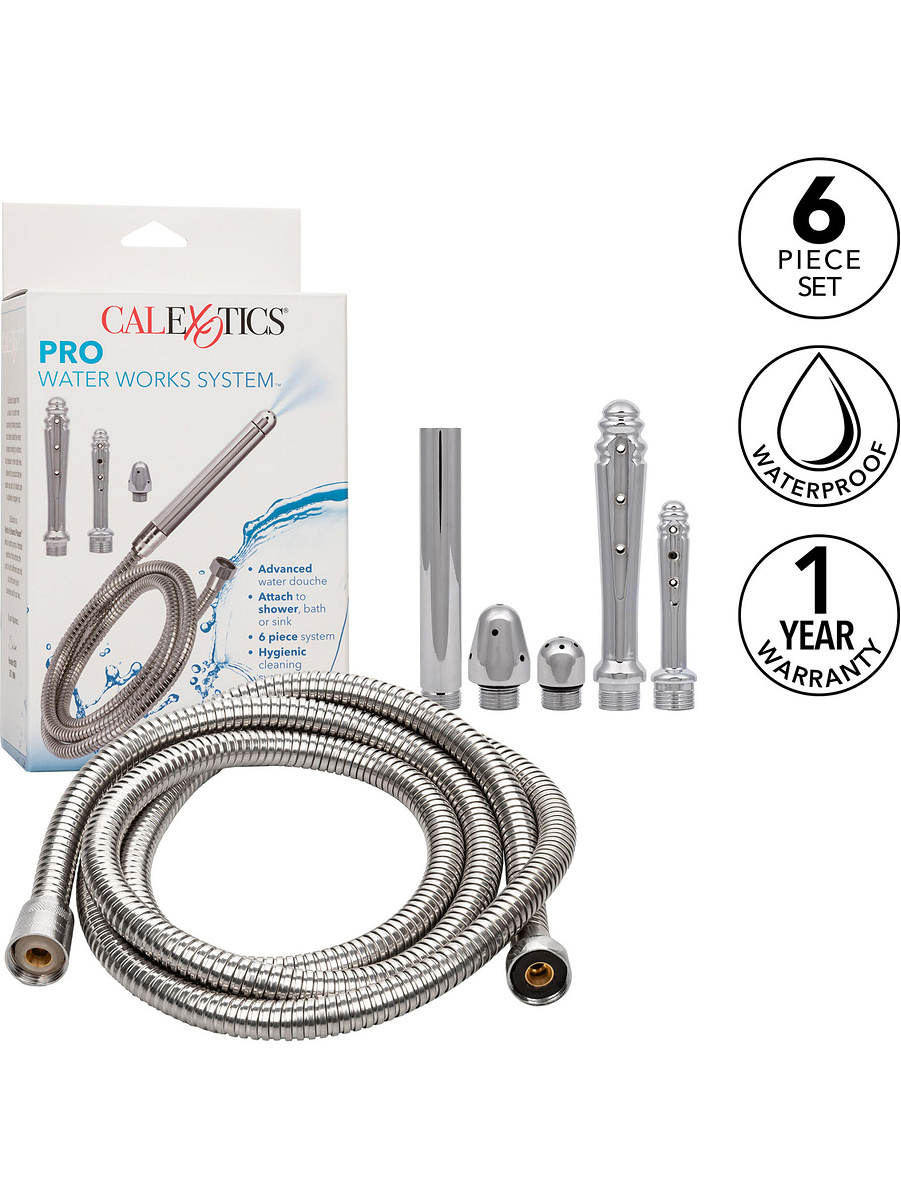 Stay fresh and enjoy a complete cleansing experience with the Pro Water Works System, a 6-piece hygienic anal cleansing system designed for both efficiency and ease of use. This flexible system is easy to install on the bathtub, sink or shower, giving you a versatile and convenient cleansing every time.