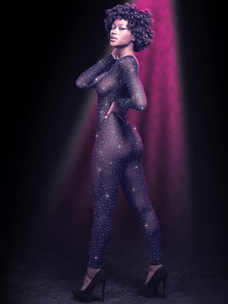 See your lover in awe when you wear the Radiance Strapless Bodysuit. The full-length bodysuit hugs your curves in soft, breathable mesh and sparkling rhinestones for a luxurious look. The open crotch leaves your most intimate parts bare for erotic play.