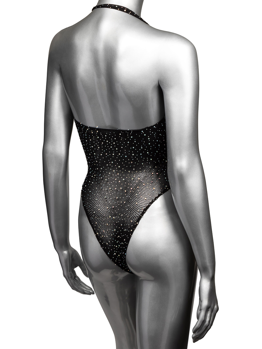 Watch your lover swoon when you wear the Radiance Deep V Neck Bodysuit. The seductive bodysuit hugs your curves in stretchy breathable mesh and sparkling rhinestones for a luxurious look. The design goes sexy around the neck and leaves large parts of the back bare.