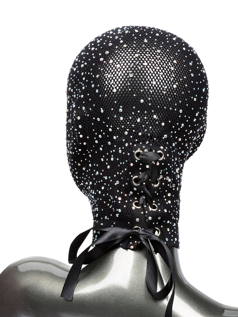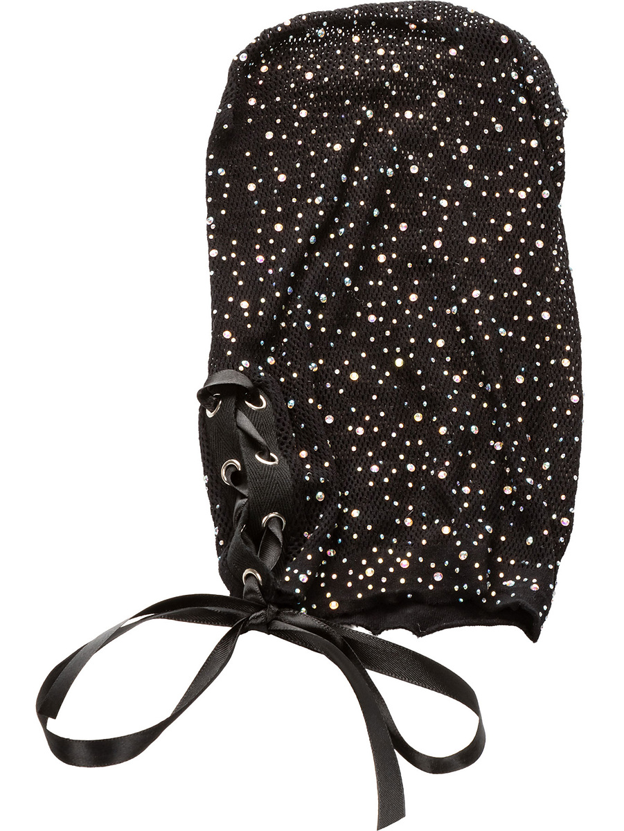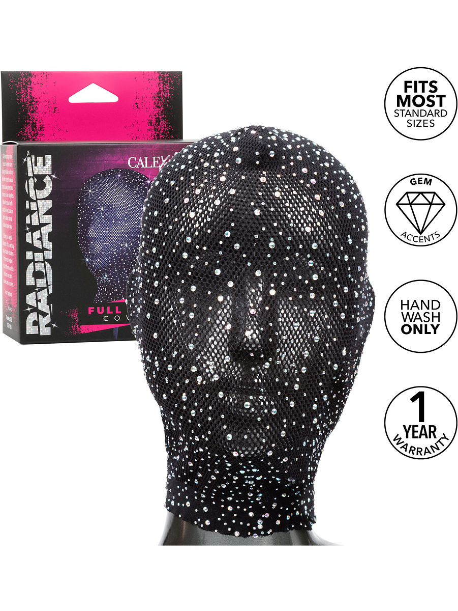 Radiance Full Hood Cover is a dazzling head mask that is perfect for all luxurious intimate adventures and exciting fantasies. The breathable mesh-hood is embellished with shimmering rhinestones and a lacing at the back for a snug fit.