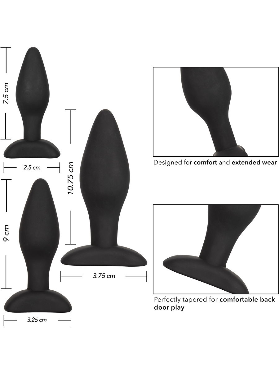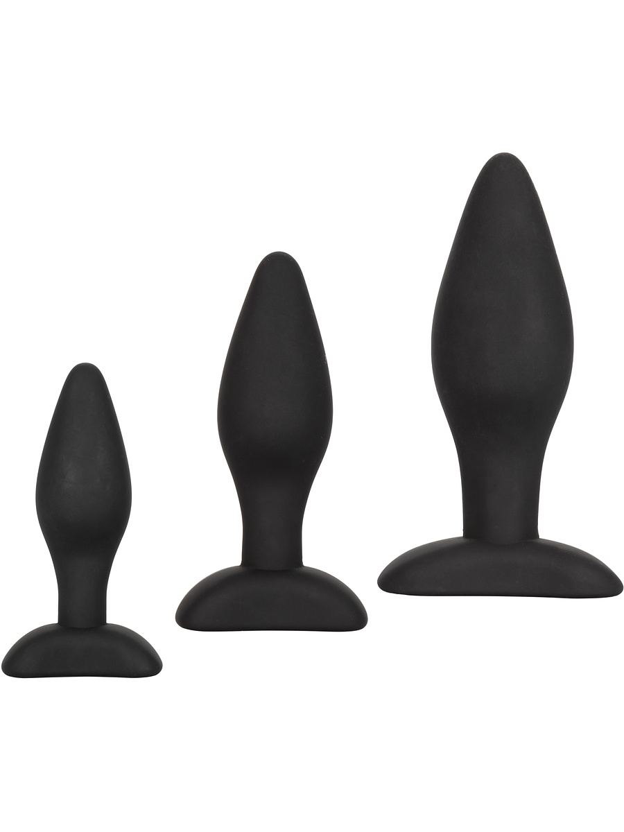 Open the door to exciting anal stimulation together with the Silicone Anal Exerciser Kit. This kit contains a set of three butt plugs in different sizes that allow you to safely and comfortably train your anal ability and increase in intensity.