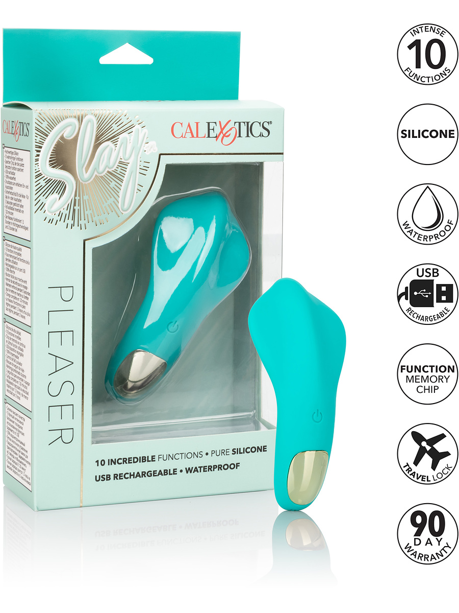 Slay Pleaser is an elegant and discreet clitoral vibrator with a unique and ergonomic design that follows your bodyshapes perfectly and stimulates your clitoris with precision. With the button on one side you can control its 10 powerful functions of vibrations, pulsations, and escalation.