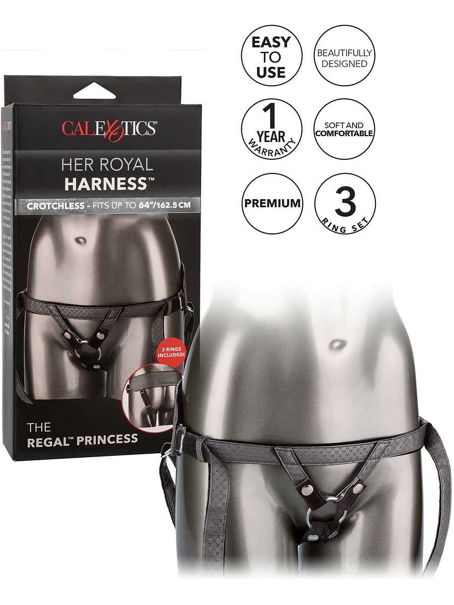 The Regal Princess is an exclusive strap-on harness that enables exciting penetration-play together with your partner. The luxurious harness is equipped with a wide design in the lower back, a velvet-smooth interior and adjustable straps around the waist and thighs - all to give you maximum comfort so you can perform at your peak.