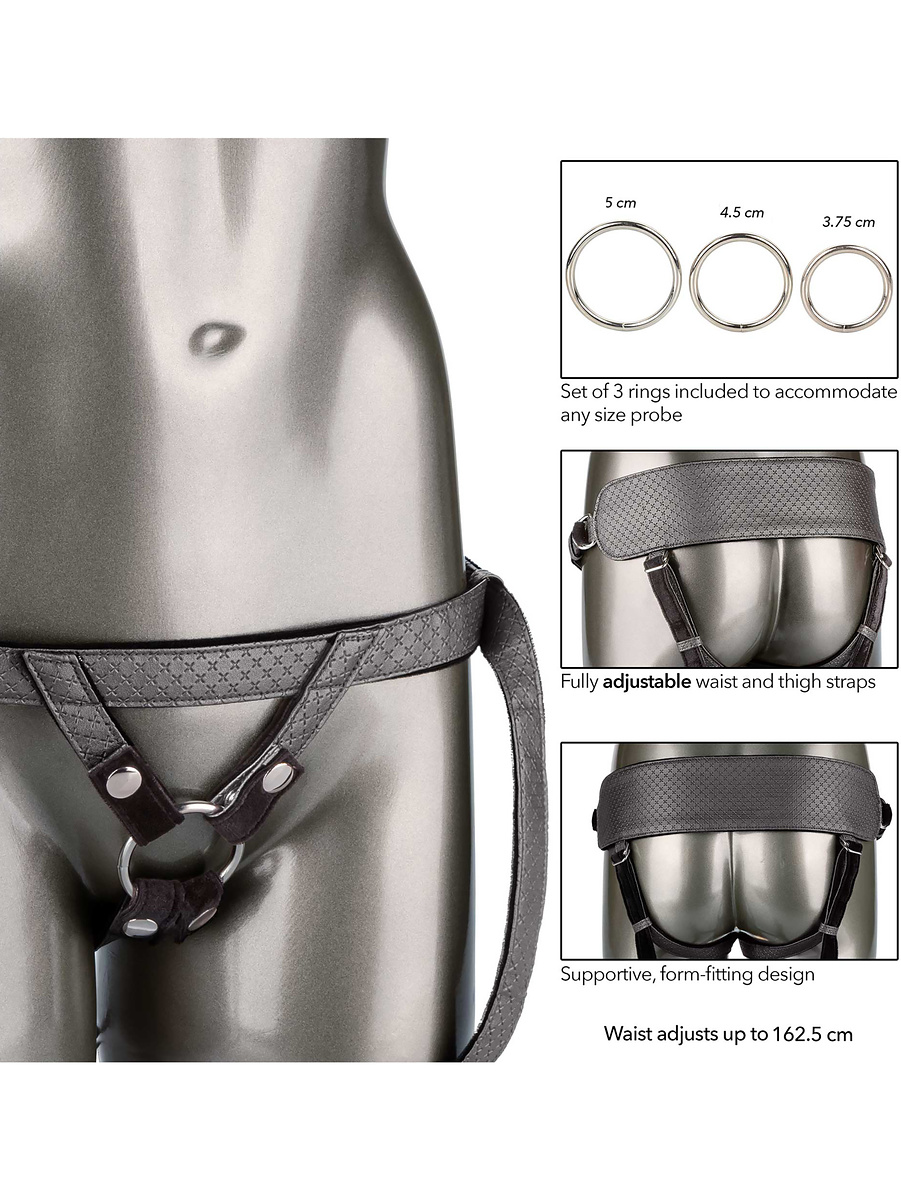 The straps around the waist and thighs are easy to adjust and fit waist measurements up to 162.5 cm. The three metal rings included are in different sizes, which allows you to attach different sized dildos and plugs for a varied experience.